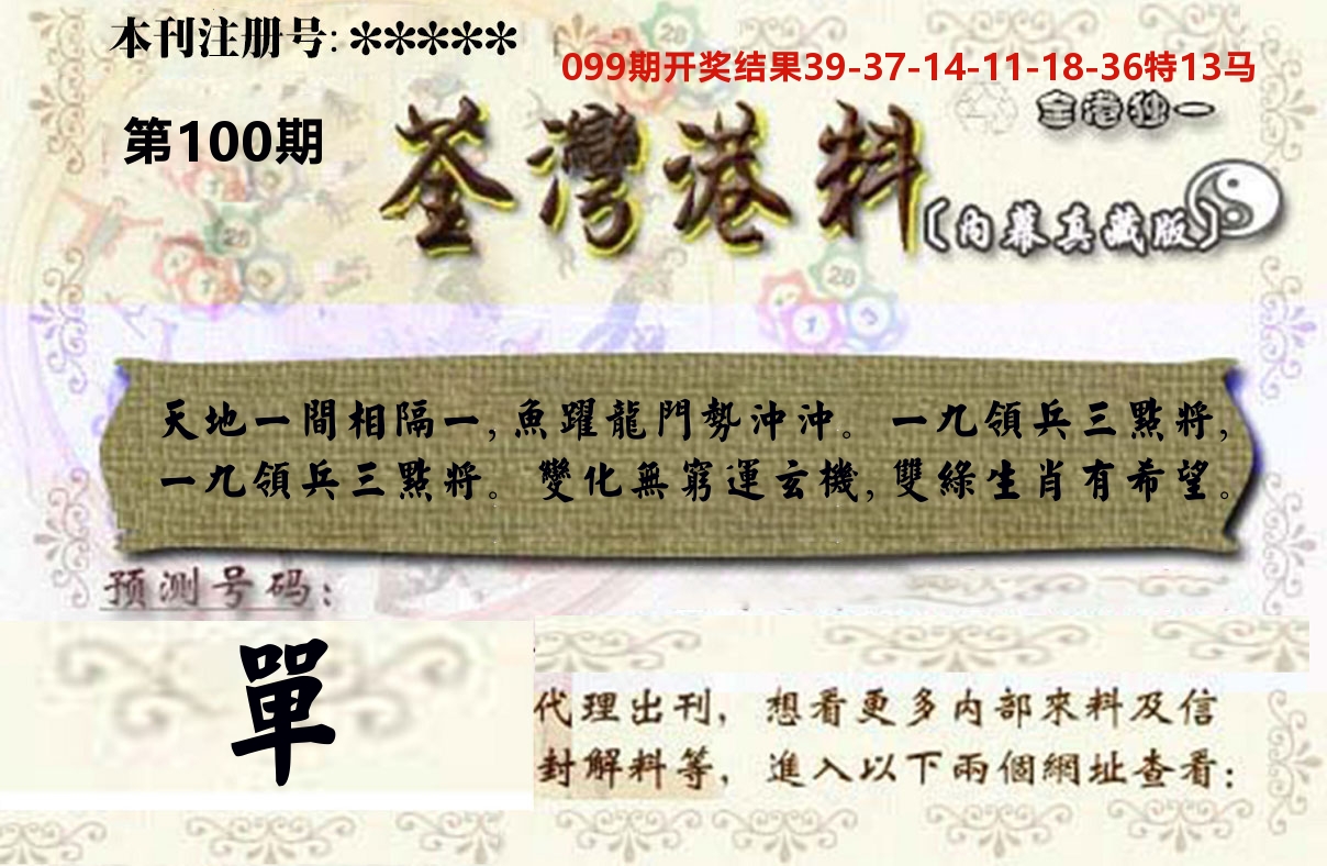 099期 好彩单双 【单单单】 开 13 准