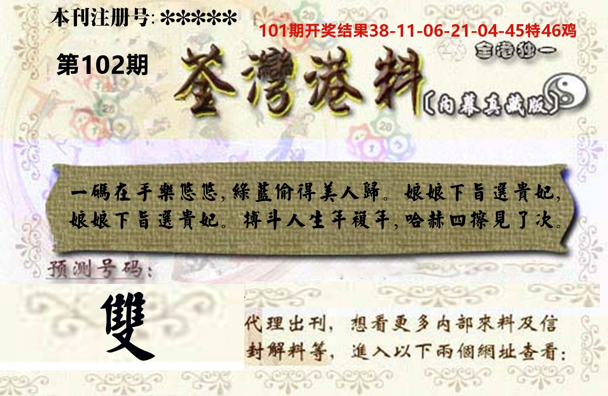 085期精选③码:【26 38 20】开 蛇38 准